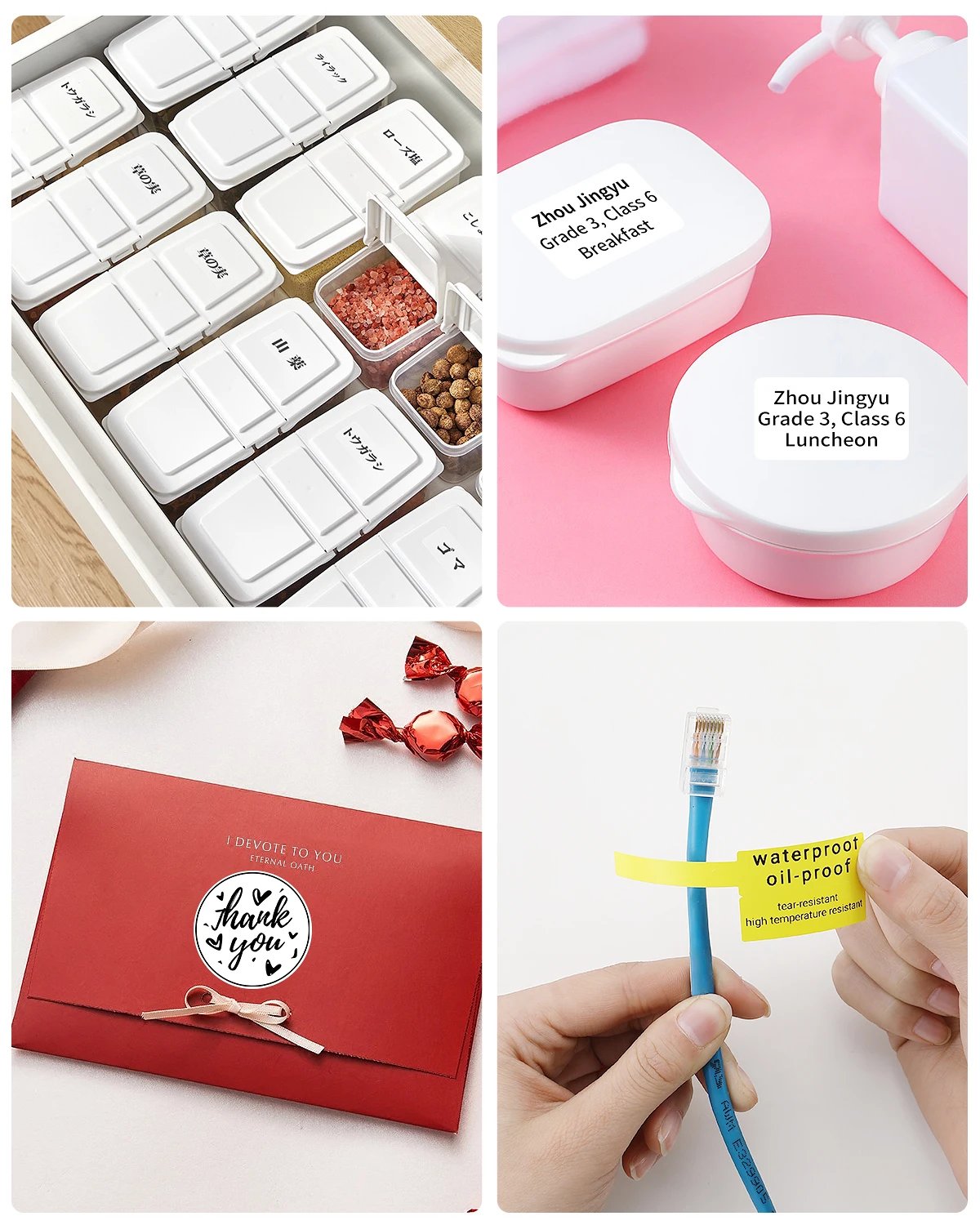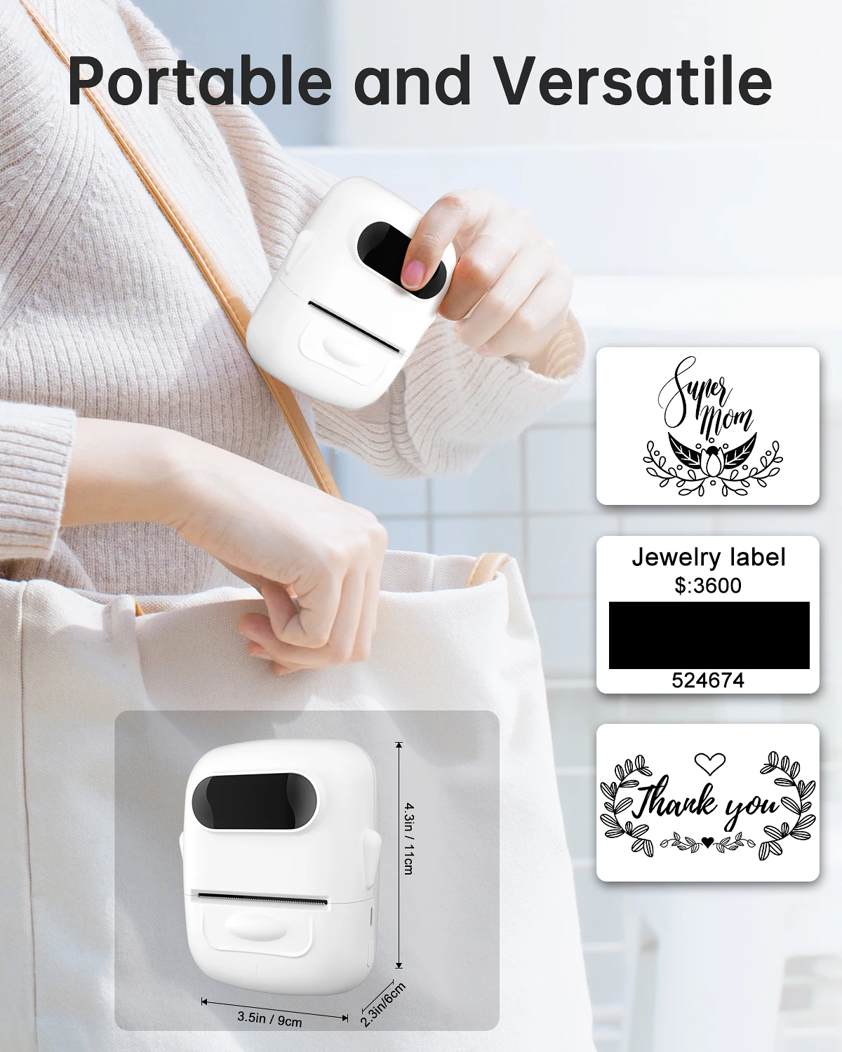 Mit einer variablen Druckbreite von 15 mm bis 57 mm (0,47 – 1,96 Zoll) lassen sich zahlreiche Etikettentypen erstellen: Preisschilder, Namensetiketten, Adressaufkleber, Bekleidungsetiketten, Kabeletiketten, Schmuckanhänger, Danksagungssticker und vieles mehr.