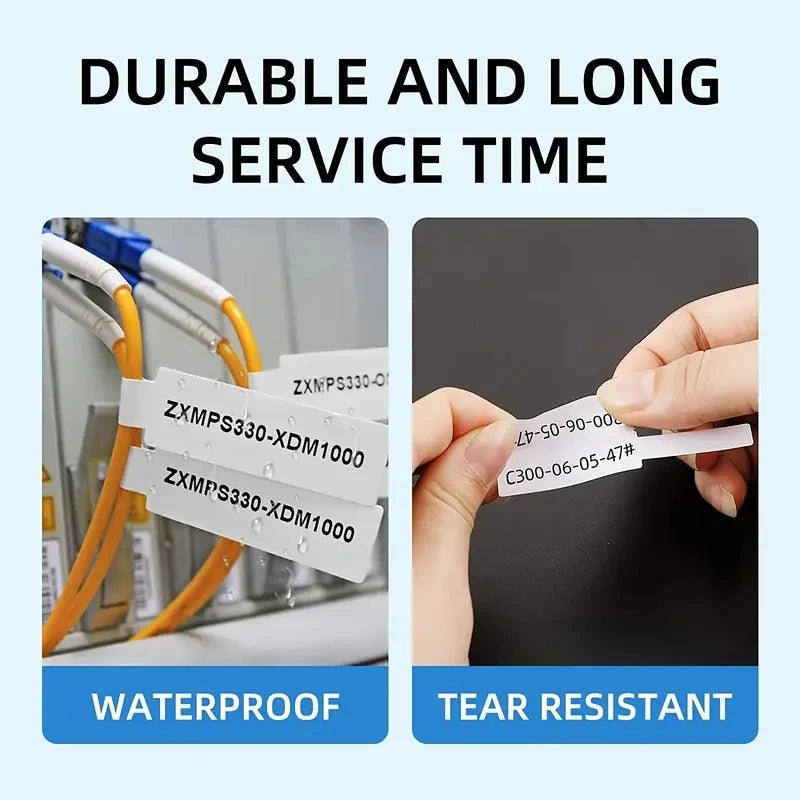 Die speziell entwickelten Kabeletiketten bestehen aus widerstandsfähigem, selbstklebendem Material, das reißfest, hitzebeständig und flexibel ist – ideal für langfristige Anwendungen in Haushalt, Werkstatt oder Unternehmen.