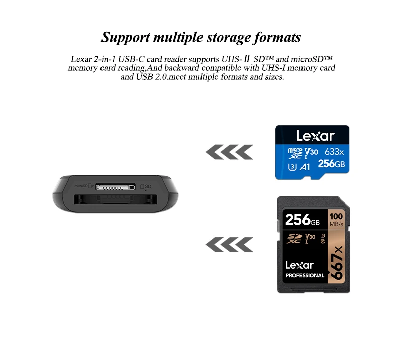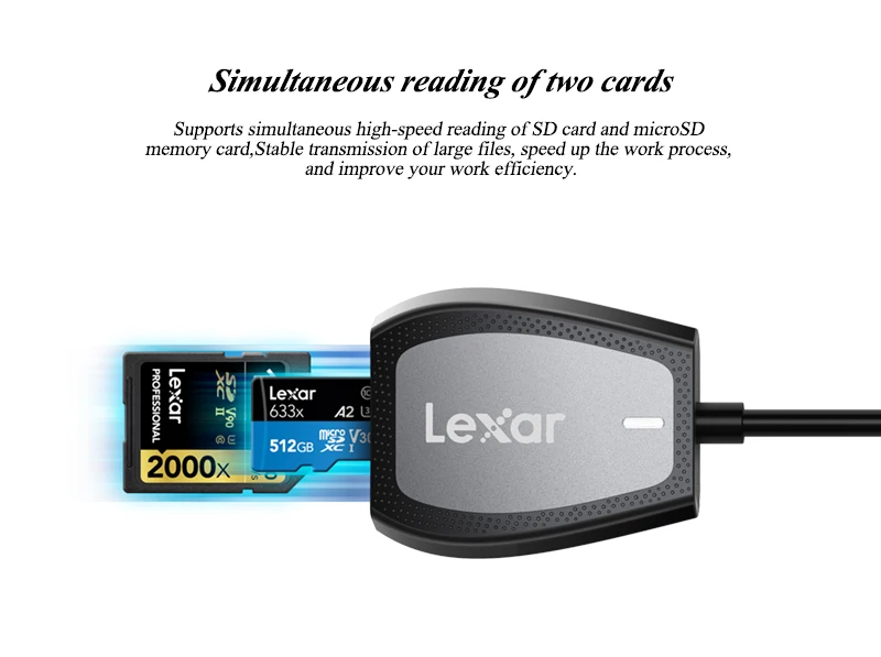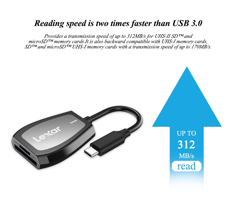 Der Kartenleser ist Plug & Play-fähig, benötigt keine zusätzliche Software oder Stromversorgung und ist sofort einsatzbereit. Alle Kartenfächer sind in einem Gerät kombiniert, sodass SD-, Micro SD- und TF-Karten gleichzeitig genutzt oder schnell gewechselt werden können. Unterstützt UHS-I Karten mit Lesegeschwindigkeiten bis zu 170 MB/s und UHS-II Karten mit Lesegeschwindigkeiten bis zu 312 MB/s, wodurch er auch für professionelle Fotografen und Videobearbeiter geeignet ist.