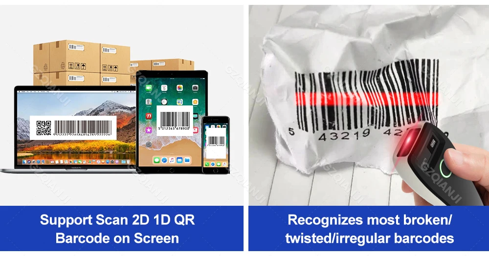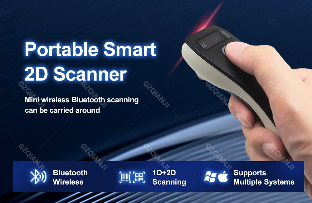 Tragbarer 2D-Barcode-Scanner mit Bluetooth, USB & OLED-Display für QR, PDF417, Lager & Einzelhandel