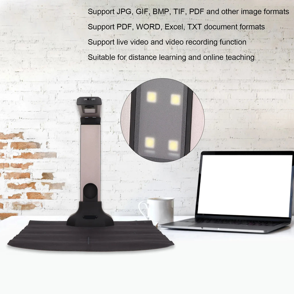 Der Scanner nutzt eine leistungsstarke OCR-Technologie mit einer Erkennungsrate von über 98 Prozent. Damit können gescannte Dokumente direkt in bearbeitbare Textdateien umgewandelt werden. Die OCR-Funktion unterstützt mehrere Sprachen und erkennt sowohl Buchstaben als auch Zahlen zuverlässig. Zusätzlich ermöglicht der Scanner eine Live-Ansicht, in der Videos in Echtzeit angezeigt und aufgenommen werden können – ideal für Online-Unterricht, Präsentationen oder Meetings.