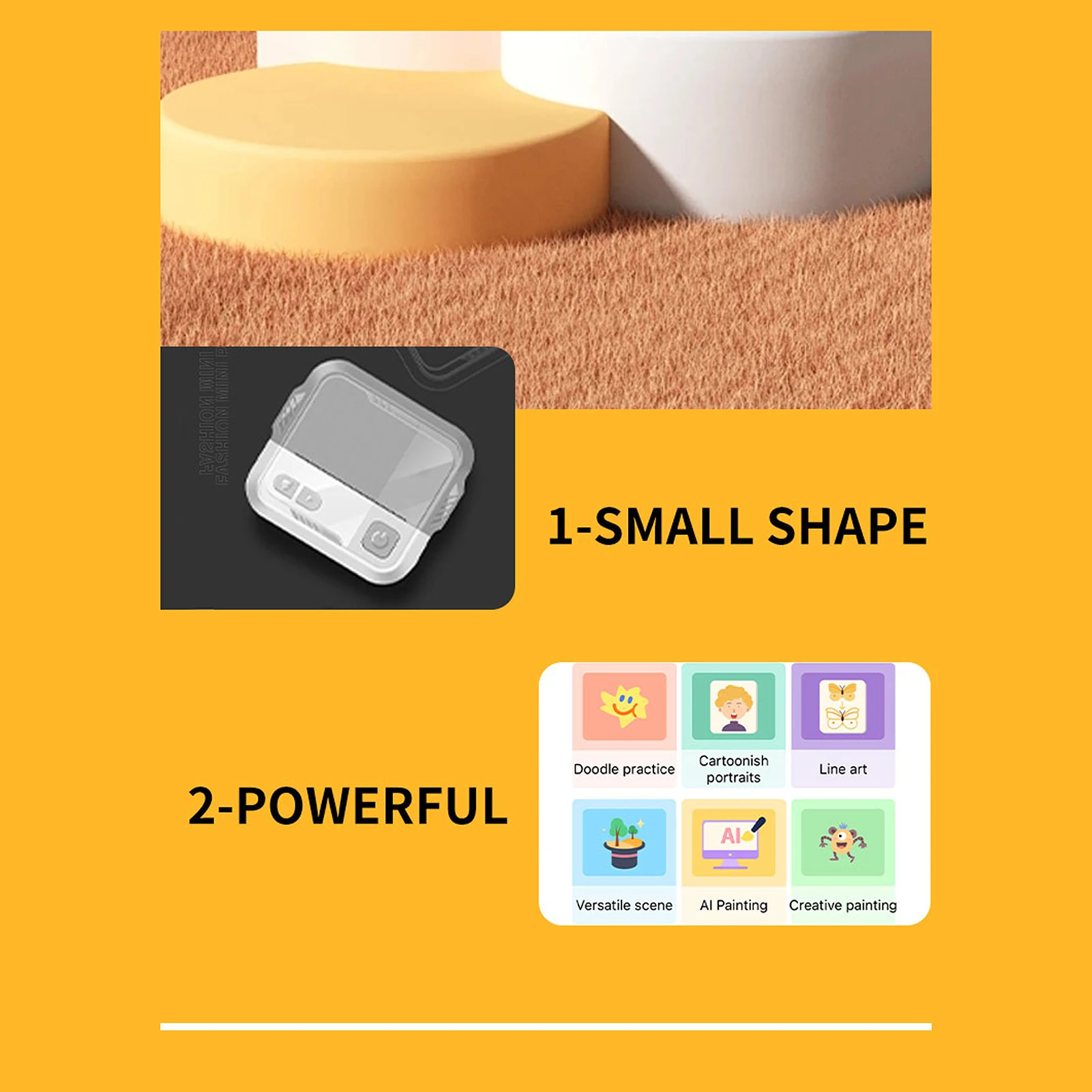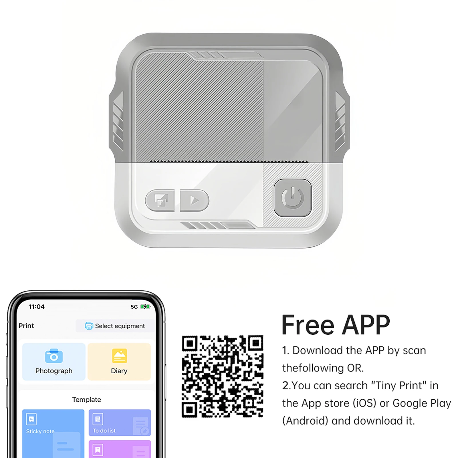 Über die kostenlose Tiny Print App (für Android und iOS) lässt sich der Drucker einfach per Bluetooth verbinden und steuern. Die Bedienung ist intuitiv – ideal für Kinder, Schüler, Studenten, Lehrer und kreative Köpfe. Der integrierte 800 mAh Akku sorgt für eine solide Akkulaufzeit bei kabellosem Betrieb.