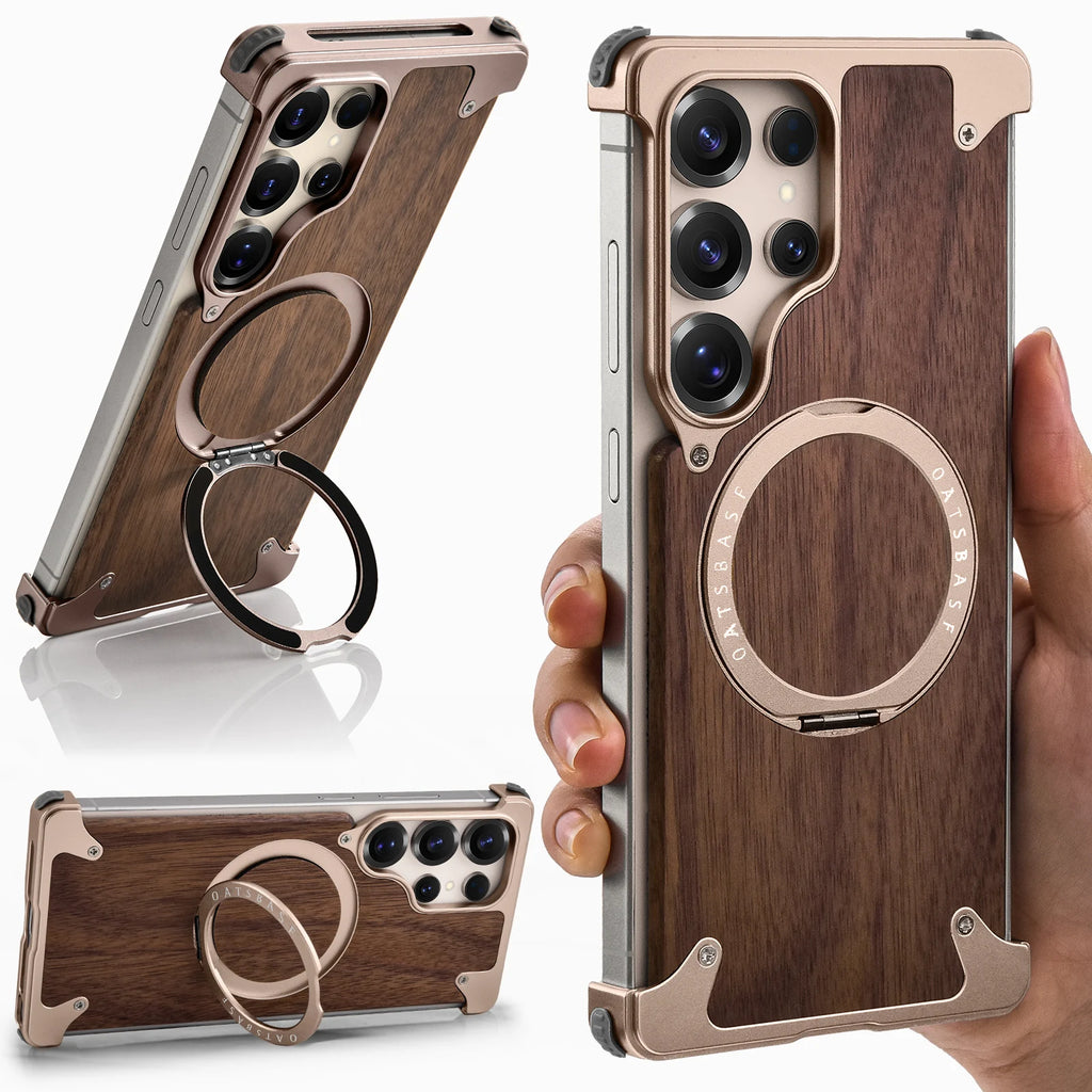 Handyhülle aus Holz mit 360° Ständer für Samsung Galaxy S25/S24 Ultra – Stoßfest, Magnetisch, Kabelloses Laden