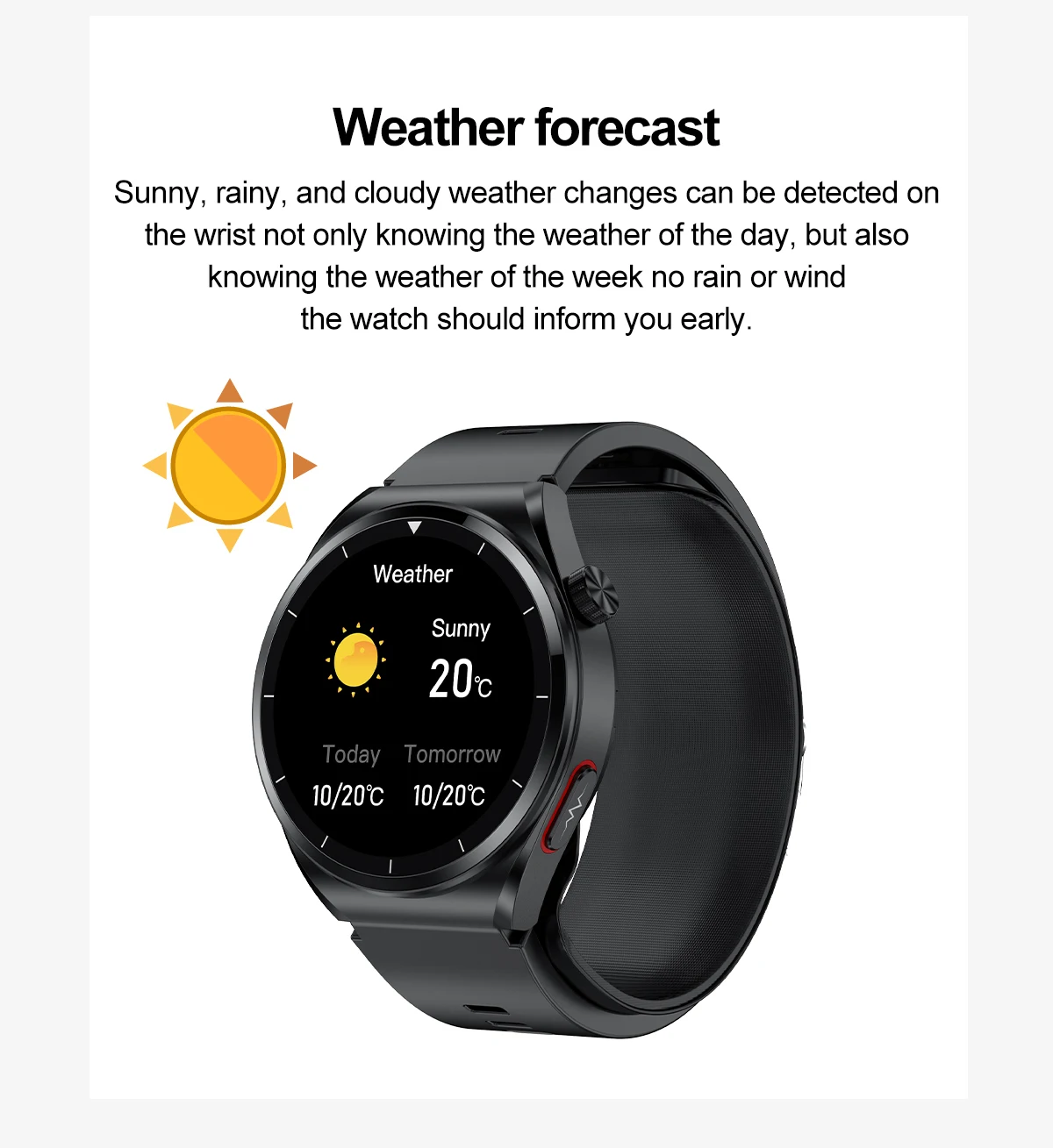Die Smartwatch verfügt über eine benutzerfreundliche Vollbild-Touchsteuerung und ist kompatibel mit allen gängigen Betriebssystemen wie Android Wear. Ein eingebauter Sprachassistent unterstützt die Bedienung. Die Uhr ermöglicht auch das Teilen von Gesundheitsdaten in Echtzeit mit Familien und Freunden, um die Fernbetreuung zu erleichtern.