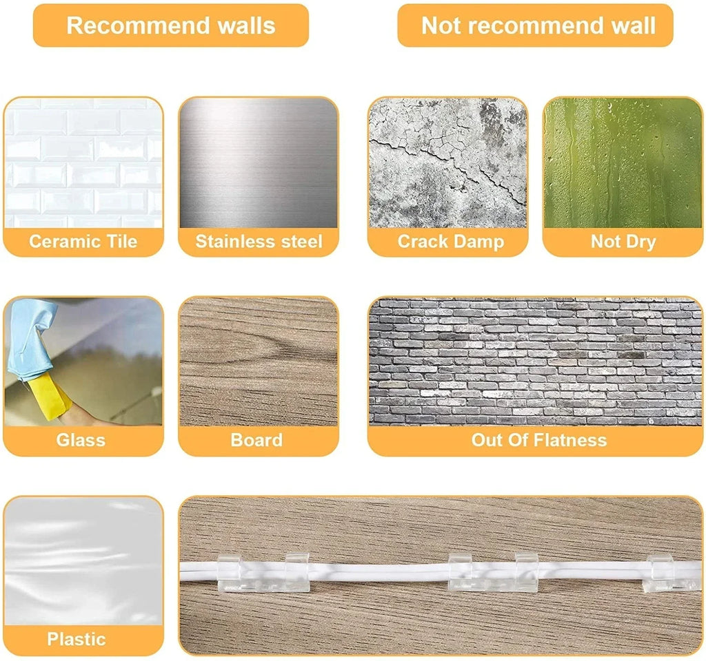 Die Anwendung ist einfach: Oberfläche reinigen, Clip fest andrücken und nach 12 Stunden das Kabel einlegen. Die Clips sind unauffällig und fügen sich nahtlos in jede Umgebung ein, wodurch Kabelsalat vermieden wird.
