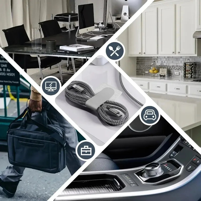 Die Kabelhalter eignen sich für den Einsatz zu Hause, im Büro, in Werkstätten oder unterwegs. Sie sorgen für Ordnung, schützen Kabel vor Beschädigungen und erleichtern das Kabelmanagement auf jedem Desktop.