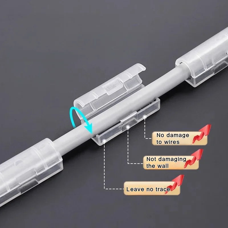 Hergestellt aus hochwertigem ABS-Kunststoff und einem Acryl-Rückseitenkleber, bieten die Kabelclips eine sichere Haftung auf verschiedenen Oberflächen, ohne Rückstände zu hinterlassen. Die Clips sind in den Farben Weiß, Transparent und Schwarz erhältlich und passen sich optisch perfekt jeder Umgebung an.