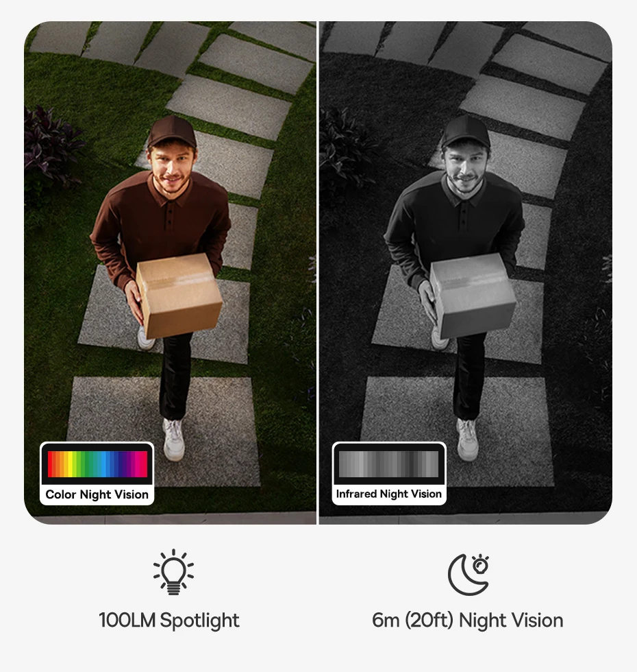 Die integrierte AI-Bewegungserkennung analysiert Bewegungen präzise und ermöglicht es, zwei benutzerdefinierte Aktivitätszonen sowie zwei Ignitionszonen einzurichten. So werden Fehlalarme minimiert und die Überwachung gezielt gesteuert. Die Kamera verfügt zudem über eine Farb-Nachtsichtfunktion, die durch einen bewegungsaktivierten Strahler nachts lebendige und klare Aufnahmen in Farbe ermöglicht.
