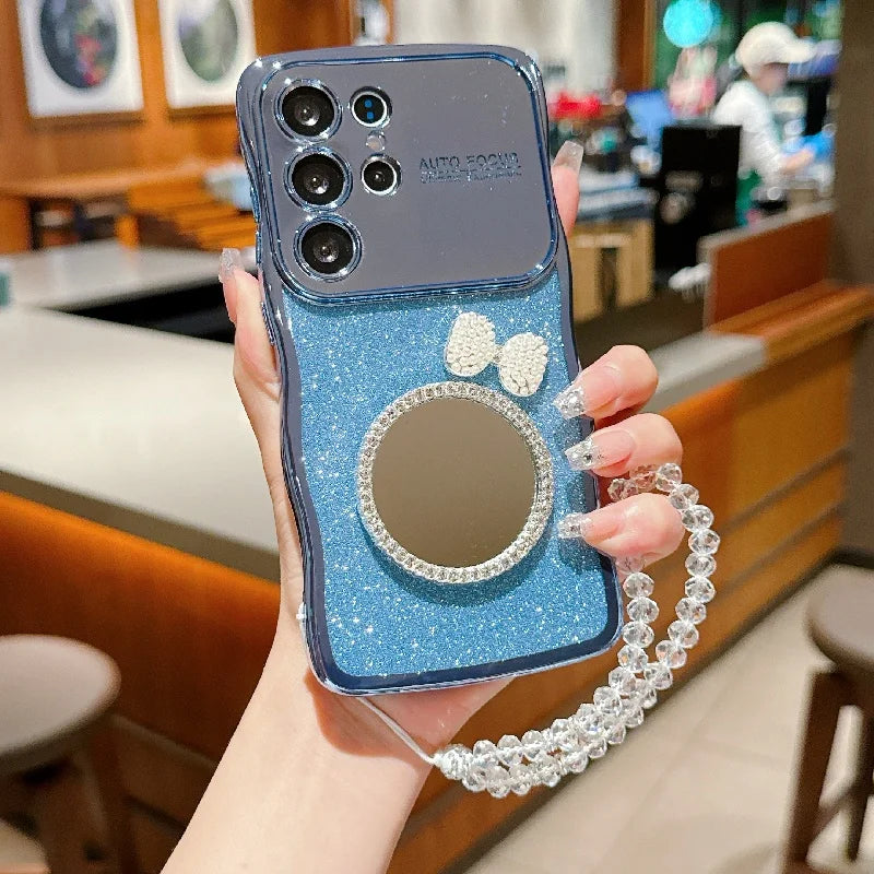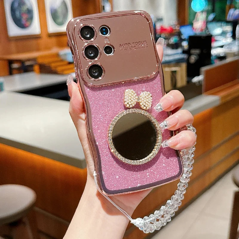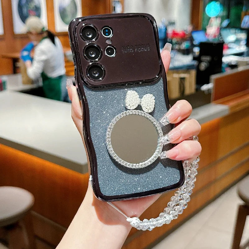 Die stilvolle Spiegel-Glitzer-Handyhülle ist speziell für das Samsung Galaxy S24 und Galaxy S25 entwickelt worden. Diese elegante Hülle vereint modisches Design mit funktionaler Sicherheit. Der integrierte Spiegel verleiht dem Case nicht nur einen glamourösen Look, sondern ist auch im Alltag praktisch – ideal zum schnellen Nachschminken oder Kontrollieren des Stylings unterwegs.