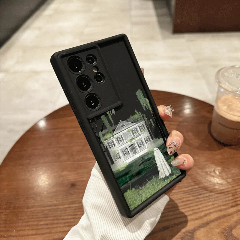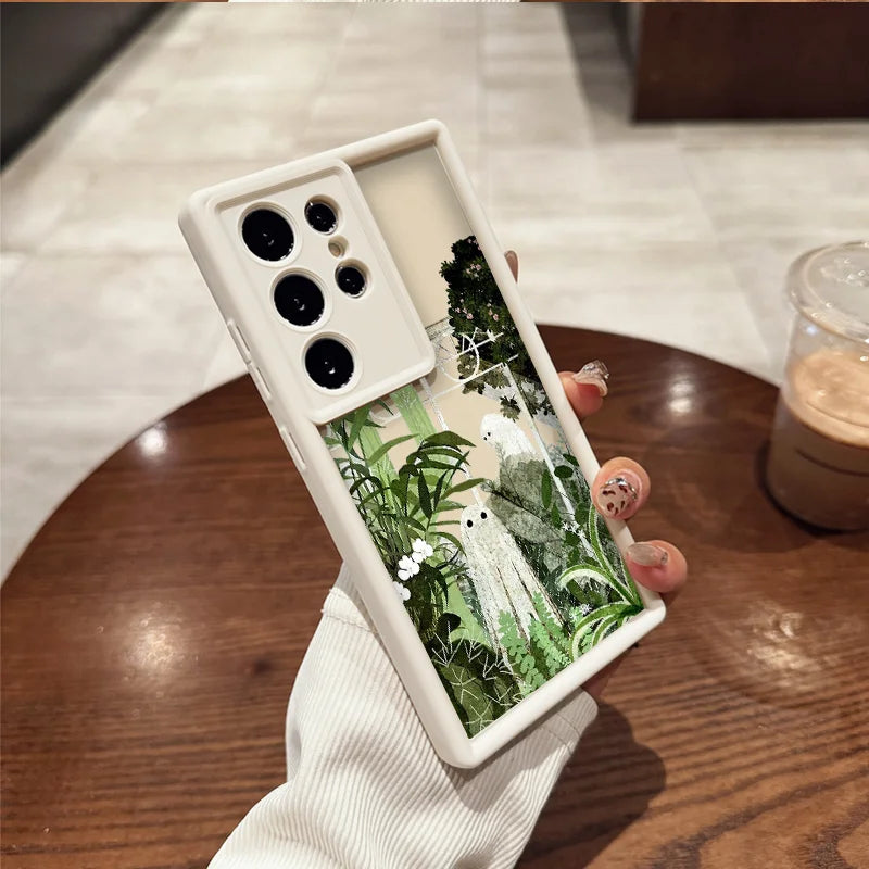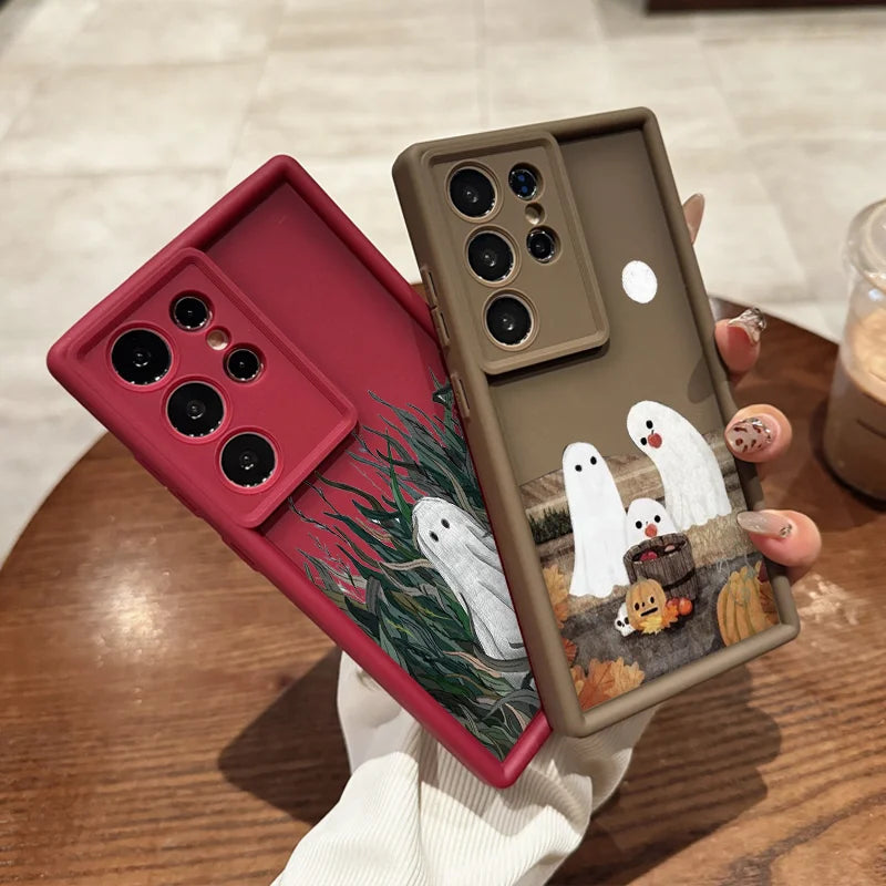 Ästhetische Cartoon-Geist Handyhülle für Samsung Galaxy S25 Ultra S24 FE S23 S22 S21 Plus – Weiche Hülle im Halloween-Stil mit Fallschutz