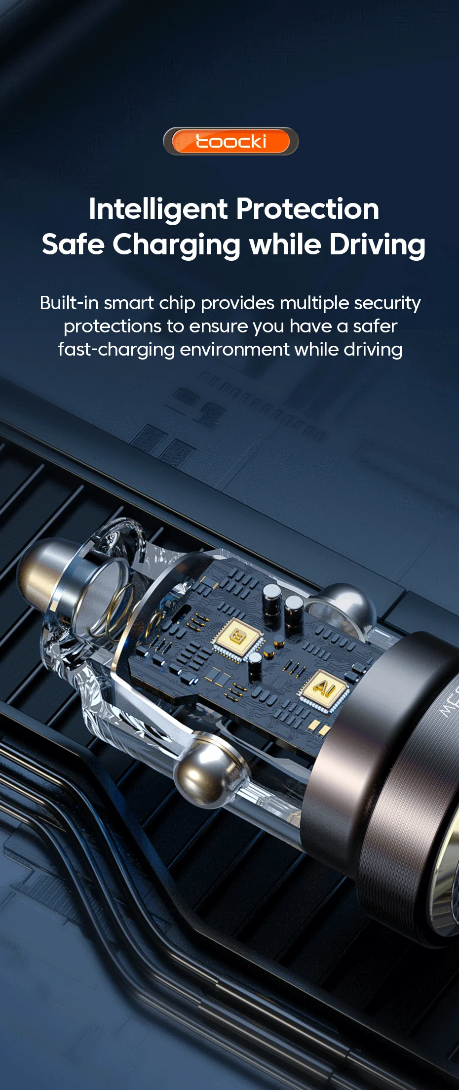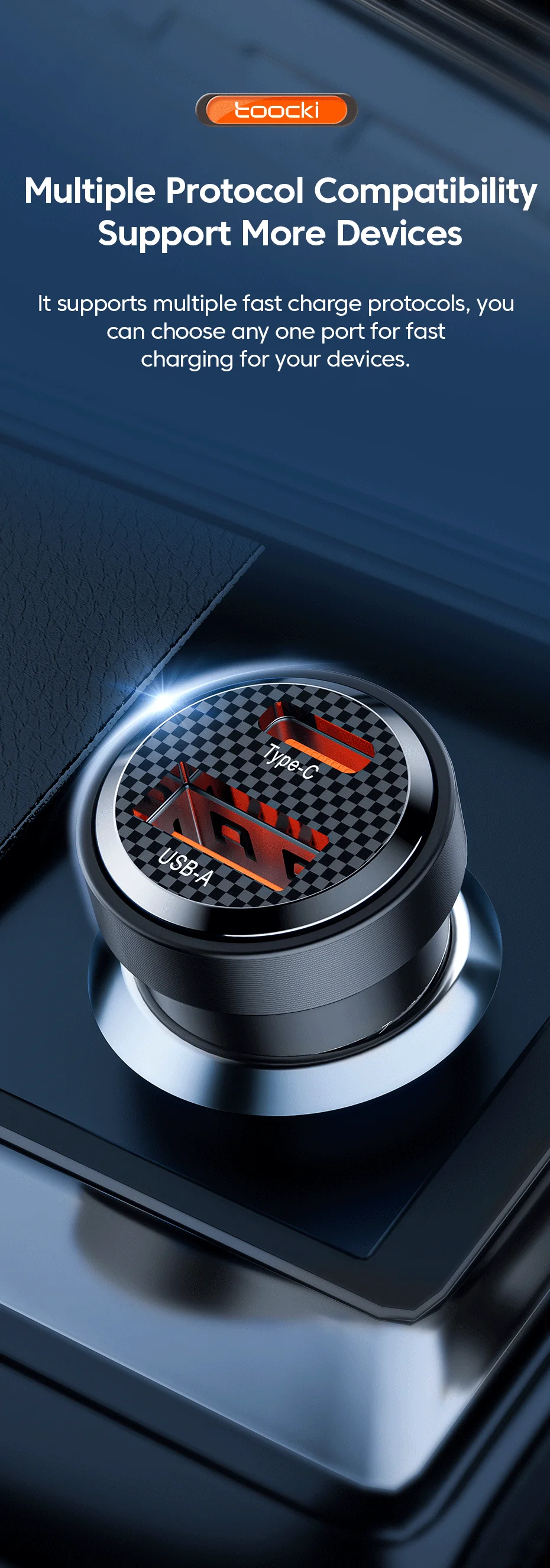 Mit einem robusten Gehäuse aus Aluminiumlegierung und PC ist das Ladegerät hitzebeständig, langlebig und ideal für den täglichen Gebrauch im Auto geeignet. Die zwei Ladeanschlüsse (USB-A + USB-C) ermöglichen gleichzeitiges Aufladen von zwei Geräten, sei es iPhone, Samsung Galaxy, Huawei oder andere kompatible Geräte.