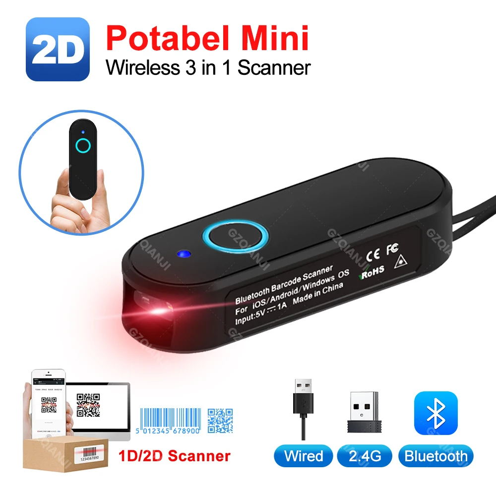 Tragbarer Bluetooth 2D Mini Barcode Scanner Pocket