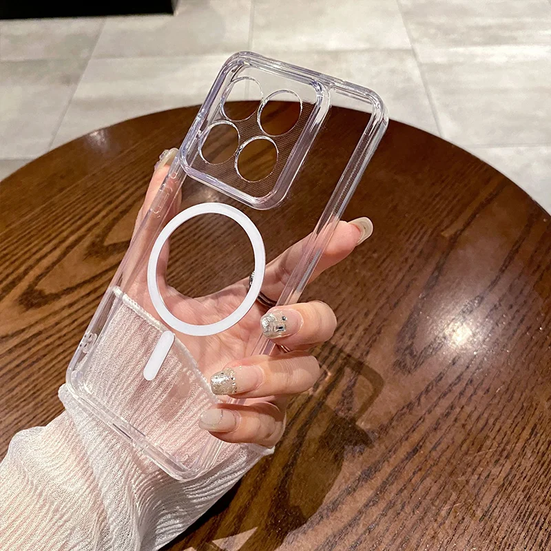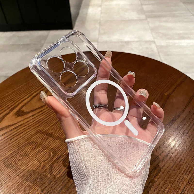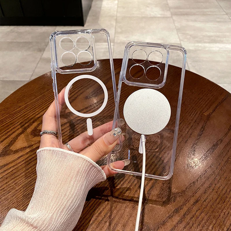 Transparente Magnetische Magsafe Hülle für Xiaomi 14 13 12 Pro Ultra – Stoßfeste Acryl Handyhülle mit Wireless Charging Funktion