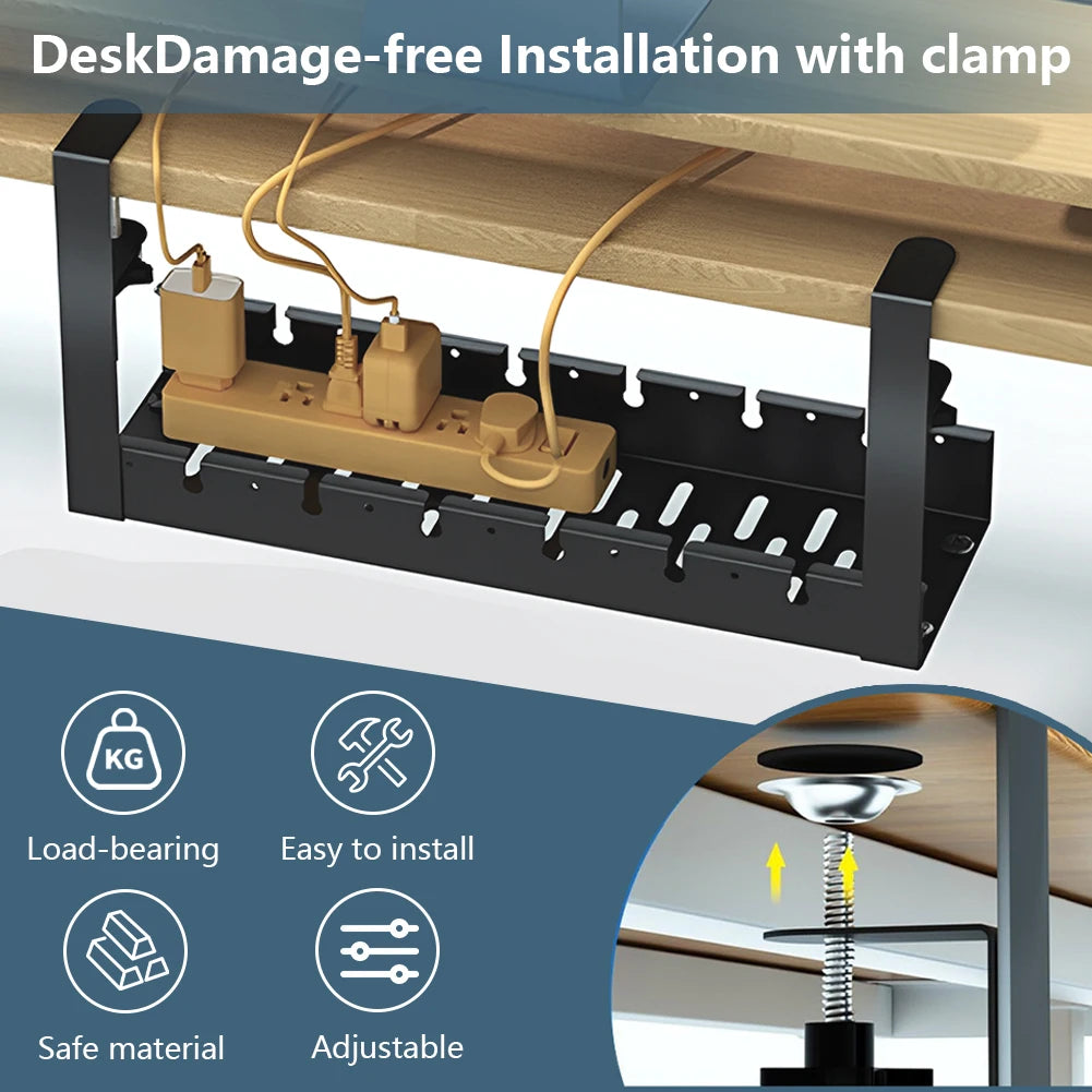 Die Konstruktion aus robustem Metall sorgt für Stabilität und Langlebigkeit, während das offene Lüftungsdesign eine optimale Luftzirkulation ermöglicht, um Überhitzung und Staubansammlungen zu vermeiden. Dank der flexiblen Klemmenmontage lässt sich das Kabelmanagement-Rack einfach anbringen und wieder entfernen, ohne Spuren oder Schäden am Möbel zu hinterlassen. Ideal für den Einsatz in Büros, zu Hause oder in Badezimmern, unter Schreibtischen, Regalen oder Schränken. Spezifikationen: Lieferumfang: #Kabelmanagement #Kabelablage #SchreibtischOrganizer #MetallKabelTray #Kabelhalterung #AusziehbaresRack #BüroOrganisation #Kabelordnung #Kabelaufbewahrung #SteckdosenLeiste #KabelClips #UntertischKabel #DrahtManagement #BüroZubehör #KabelSystem #SchweizZurich #SchweizGeneva #SchweizBasel #SchweizBern #SchweizLausanne
