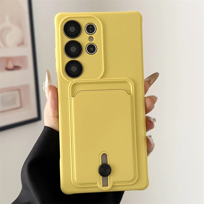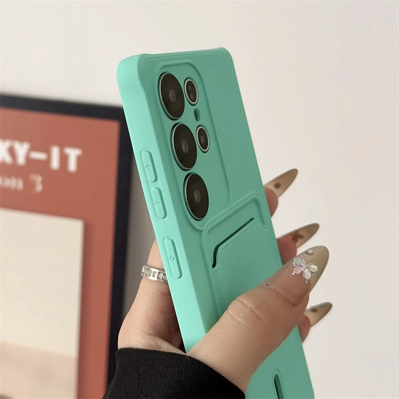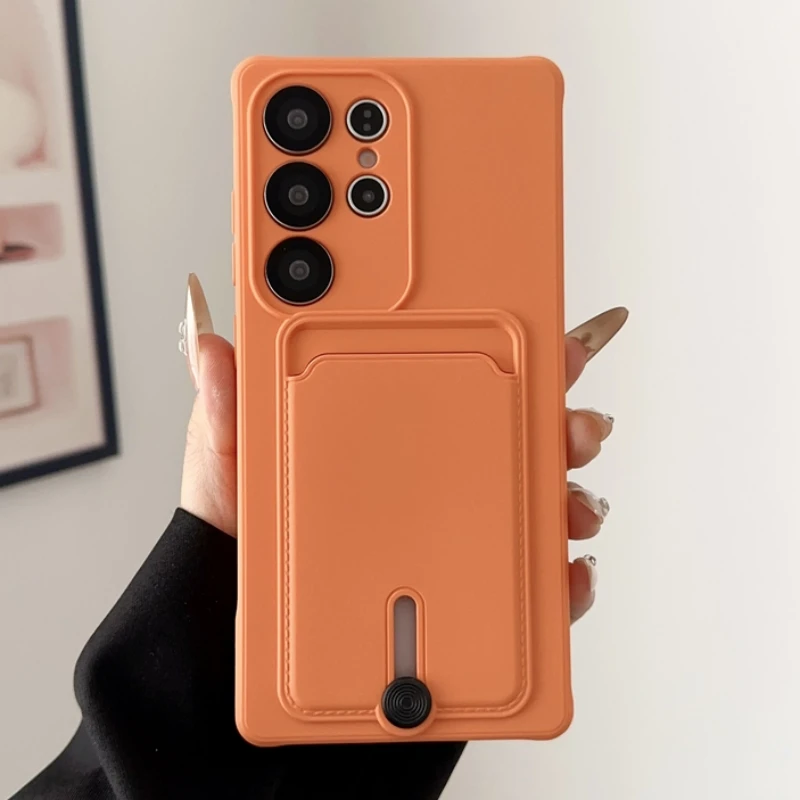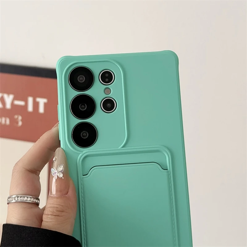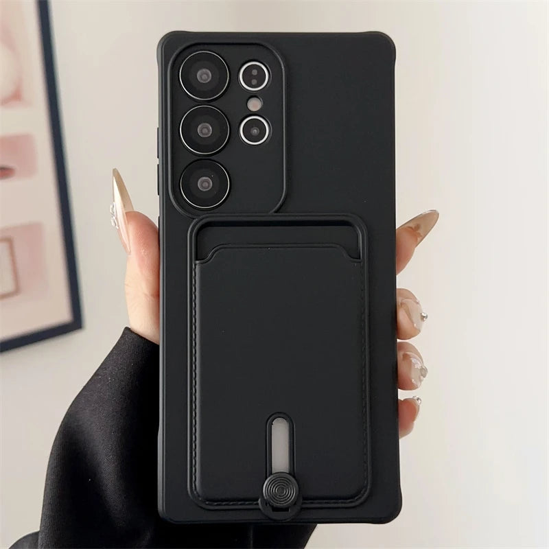 Weiche Silikonhülle mit Kartenhalter für Samsung S25 S24 S23 und mehr – Flexibler Schutz mit praktischem Kartenfach