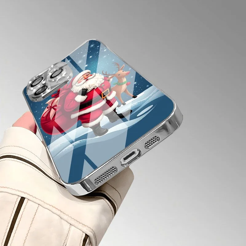 Diese elegante Weihnachtsmann-Handyhülle aus gehärtetem Glas mit elektroplattierter Silberbeschichtung schützt dein Samsung S23, S24 oder S25 zuverlässig vor Kratzern, Stößen, Staub und Fingerabdrücken. Das festliche Muster kombiniert weihnachtliche Motive mit modernem geometrischem Design und verleiht deinem Smartphone einen einzigartigen, luxuriösen Look.