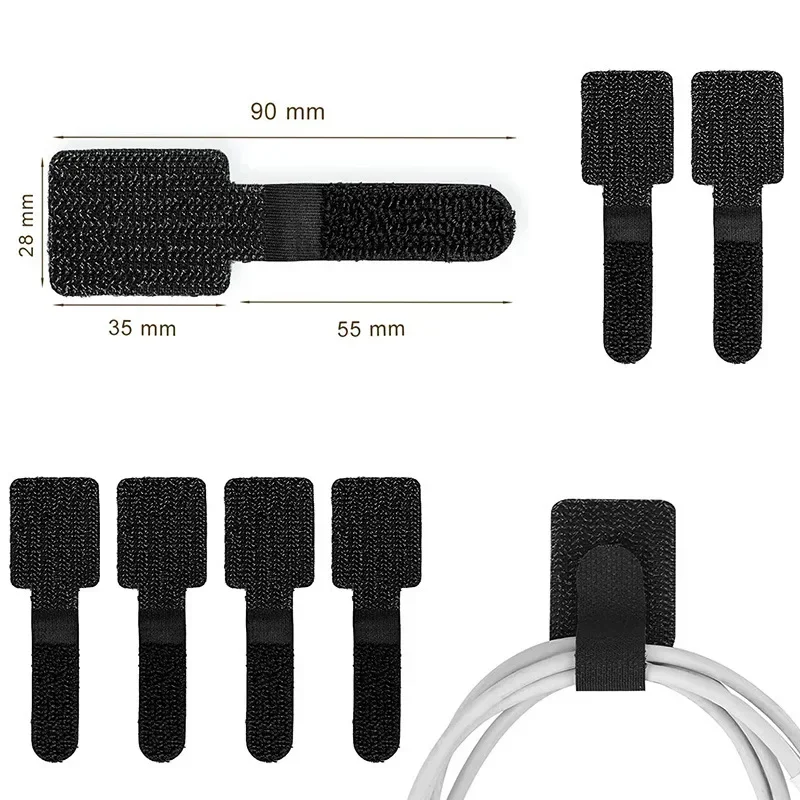 Dieses Set wiederverwendbarer Klett-Kabelbinder ist die perfekte Lösung, um Kabel ordentlich zu organisieren und Kabelsalat zu vermeiden. Die verstellbaren Halter eignen sich ideal für Desktop, Büro, Zuhause oder unterwegs. Dank des Klettverschlusses lassen sich Kabel einfach befestigen, anpassen und bei Bedarf wieder lösen, ohne die Kabel zu beschädigen.