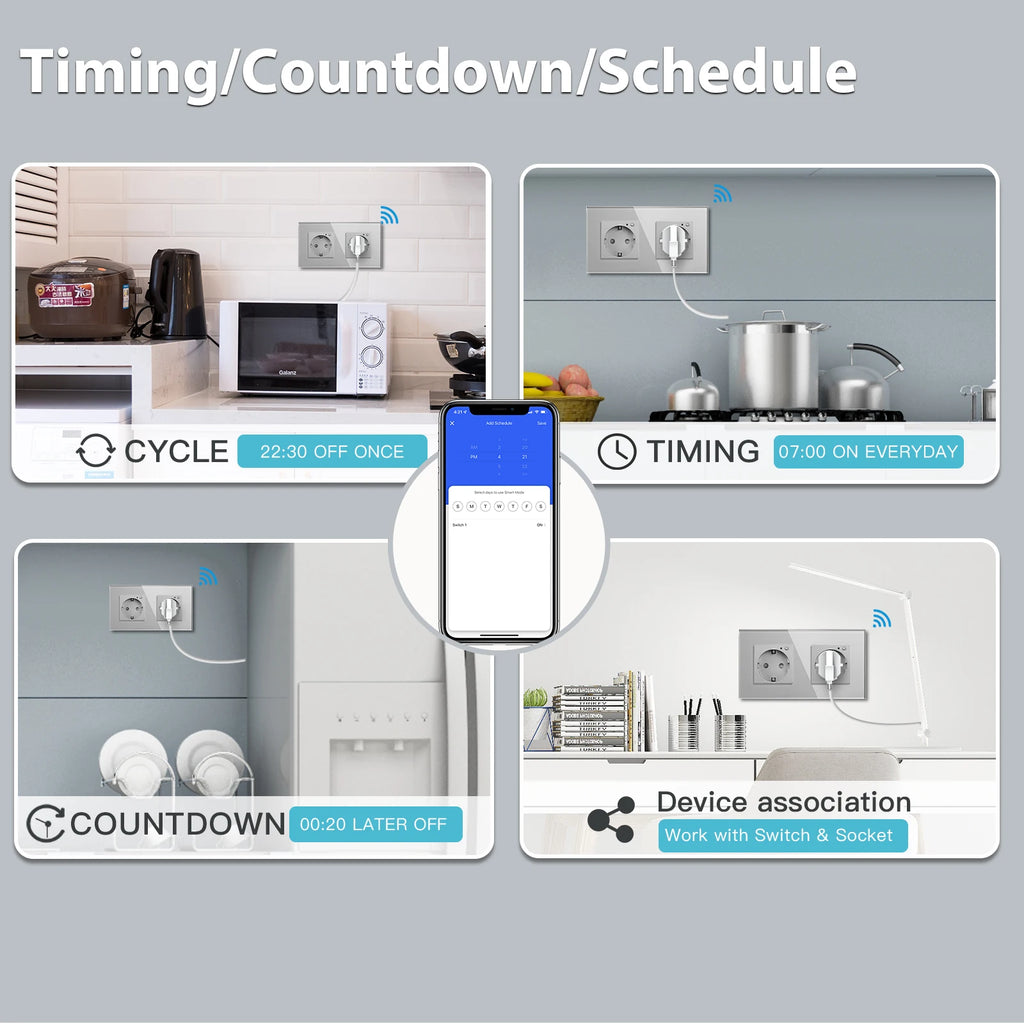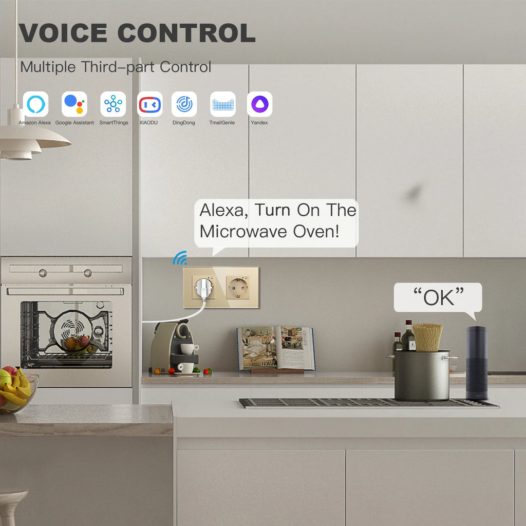 Diese moderne WLAN Smart Steckdose mit elegantem Glas-Touch-Panel vereint Stil, Sicherheit und intelligente Steuerung. Sie ist ideal für den Einsatz in Wohnzimmer, Küche, Schlafzimmer, Büro oder Flur und lässt sich mühelos in jedes moderne Zuhause integrieren. Dank der Unterstützung von Smart Life oder Tuya App können Sie Ihre Geräte bequem per Smartphone oder Sprachsteuerung über Google Home oder Amazon Alexa steuern.